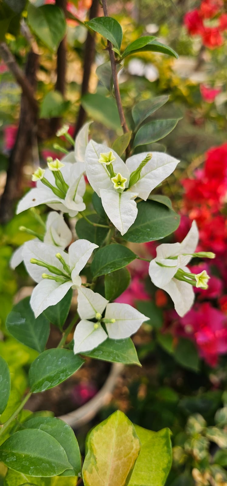 Bougainvillea is a permanent flowering plant. Brizza is a repeated Bloomer ID. It continuously changes the color of its flowers, and you will find flowers on this plant throughout the year. This flower comes in 4 colours. Red, purbel, ehite, peach. This plant is excellent for beginners. You can add this plant to your garden with very little maintenance. This is a thai variety.